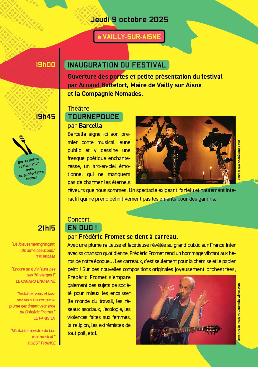 Le Festival des Arts de Formes Courtes revient pour sa 5ème édition ! Pendant trois jours, la commune de Vailly et plusieurs villages du territoire vibreront au rythme du théâtre, de la musique, du cinéma et d’ateliers artistiques. Un programme riche et varié, pensé pour tous les publics : familles, passionnés de spectacle vivant, curieux en quête de découvertes… chacun y trouvera son bonheur ! Programme: Soirée inaugurale 12€, autres jours 2€ https://www.compagnienomades.net/single-post/programmation-du-5%C3%A8me-festival-des-arts-de-formes-courtes