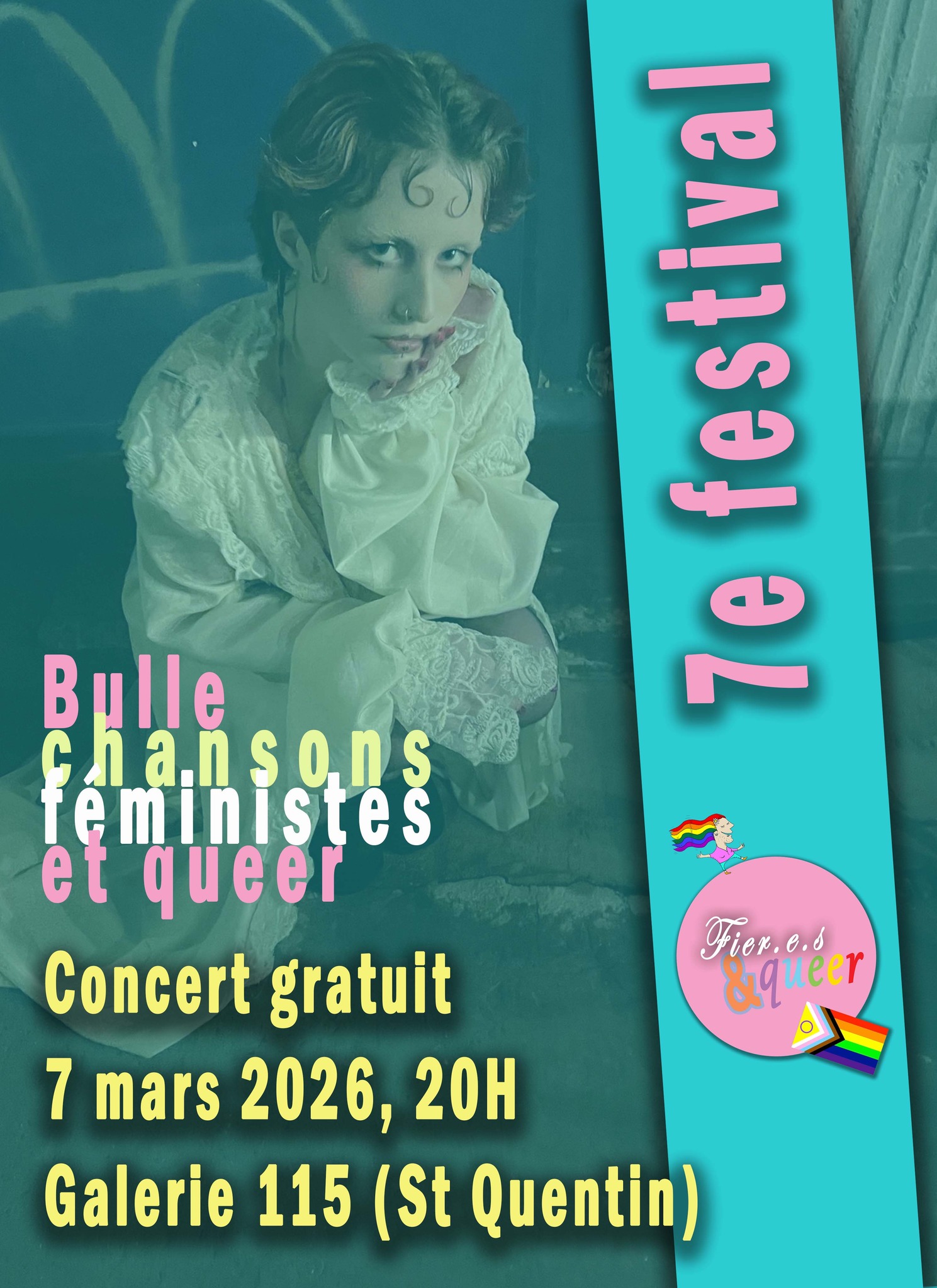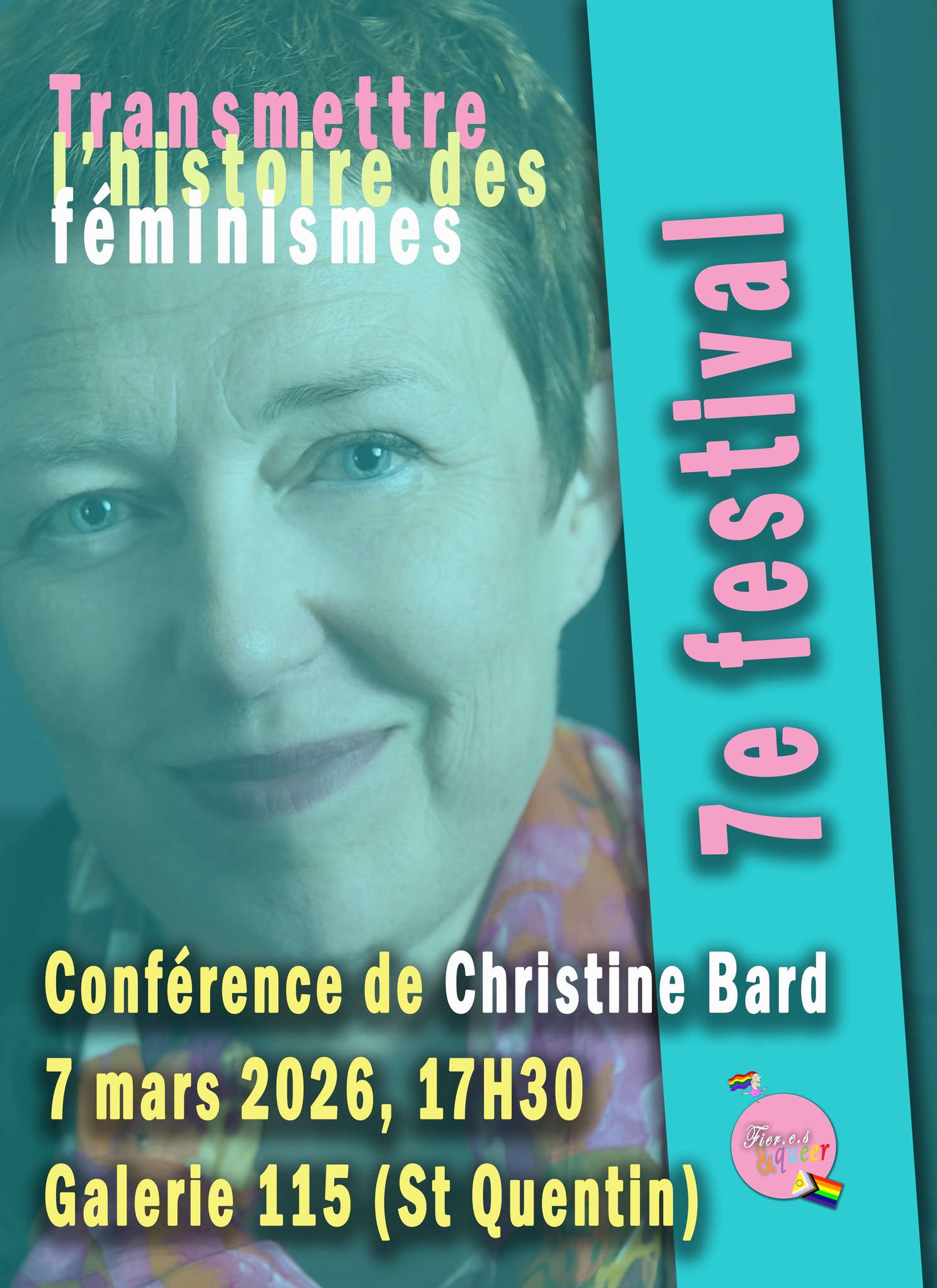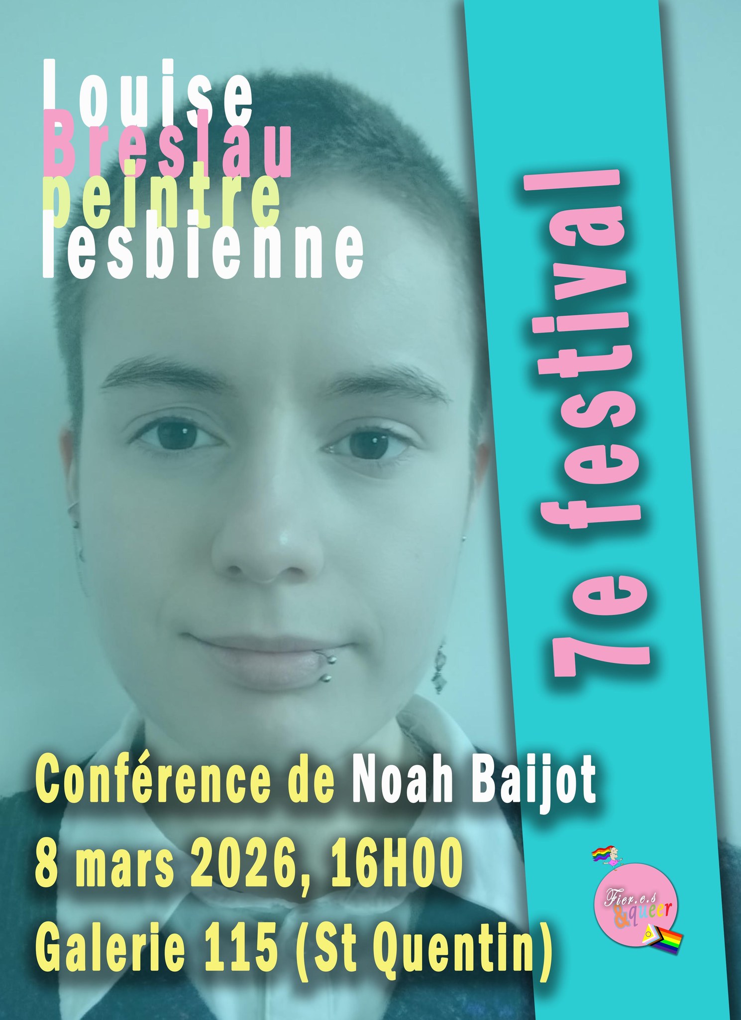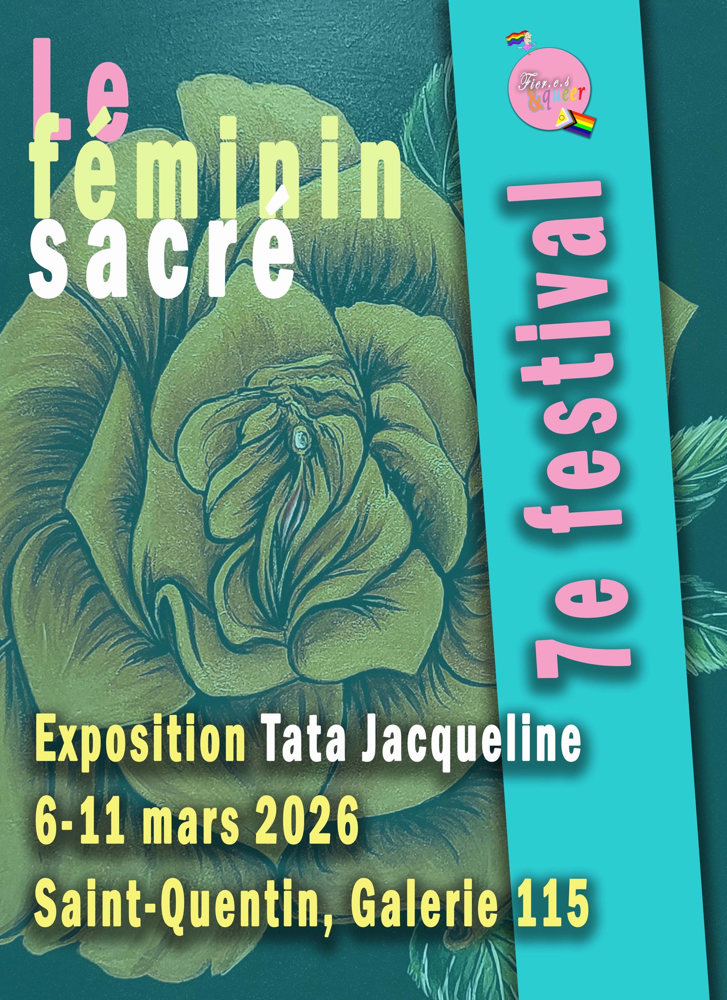 Pour la 7ème édition de son Festival qui se déroulera du 6 au 11 mars 2026 à Saint-Quentin, l’association FIER.E.S & QUEER vous a concocté un super programme. Les expositions proposées au 115 Galerie d'Art (115 rue d'Isle) : - À l’encre des mots : poèmes d'Arlette Perrin et photos de qpfeydel - Le féminin sacré, par Tata Jacqueline - VIH-Sida protège-toi, protège-moi - Violences sexistes et sexuelles, ça suffit ! - Jeanne Laloë, une féministe axonaise dans la bataille électorale Vendredi 6 mars - 14h-19h, expositions à la Galerie 115. Samedi 7 mars : - 14h-19h, expositions à la Galerie 115. - 16h, Nos corps, nos amours, nos colères – luttes féministes et lgbt+ (1970-1979) : présentation par Stéphanie Lemaire - 17h30, Conférence de Christine Bard : « Transmettre l’histoire des féminismes » - 19h, Vernissage dînatoire - 20h, Concert de Bulle (chansons féministes et queer) Dimanche 8 mars : - 14h-19h, expositions à la Galerie 115. - 15h, Notre fanzine féministe et queer, distribution et échanges - 16h, Conférence de Noah Baijot : «Louise Breslau, peintre lesbienne» Lundi 9 mars : - Galerie 155, fermée - 20h, Ciné-débat au CGR Saint-Quentin : « Muganga, celui qui soigne » Mardi 10 mars : - 14h-19h, expositions à la Galerie 115. Mercredi 11 mars : - 14h-19h, expositions à la Galerie 115. - 14h30-16h, atelier bracelets queer - 16h-17h, atelier jeu « Sexo, vrai ou faux » (Evars) Tous les événements à Le 115 Galerie d'art : entrée libre et gratuite. Renseignements : Association FIER.E.S & QUEER Espace Matisse - 1, rue Théophile Gautier - 02100 Saint-Quentin fieresetqueer@gmail.com 07 45 03 31 73