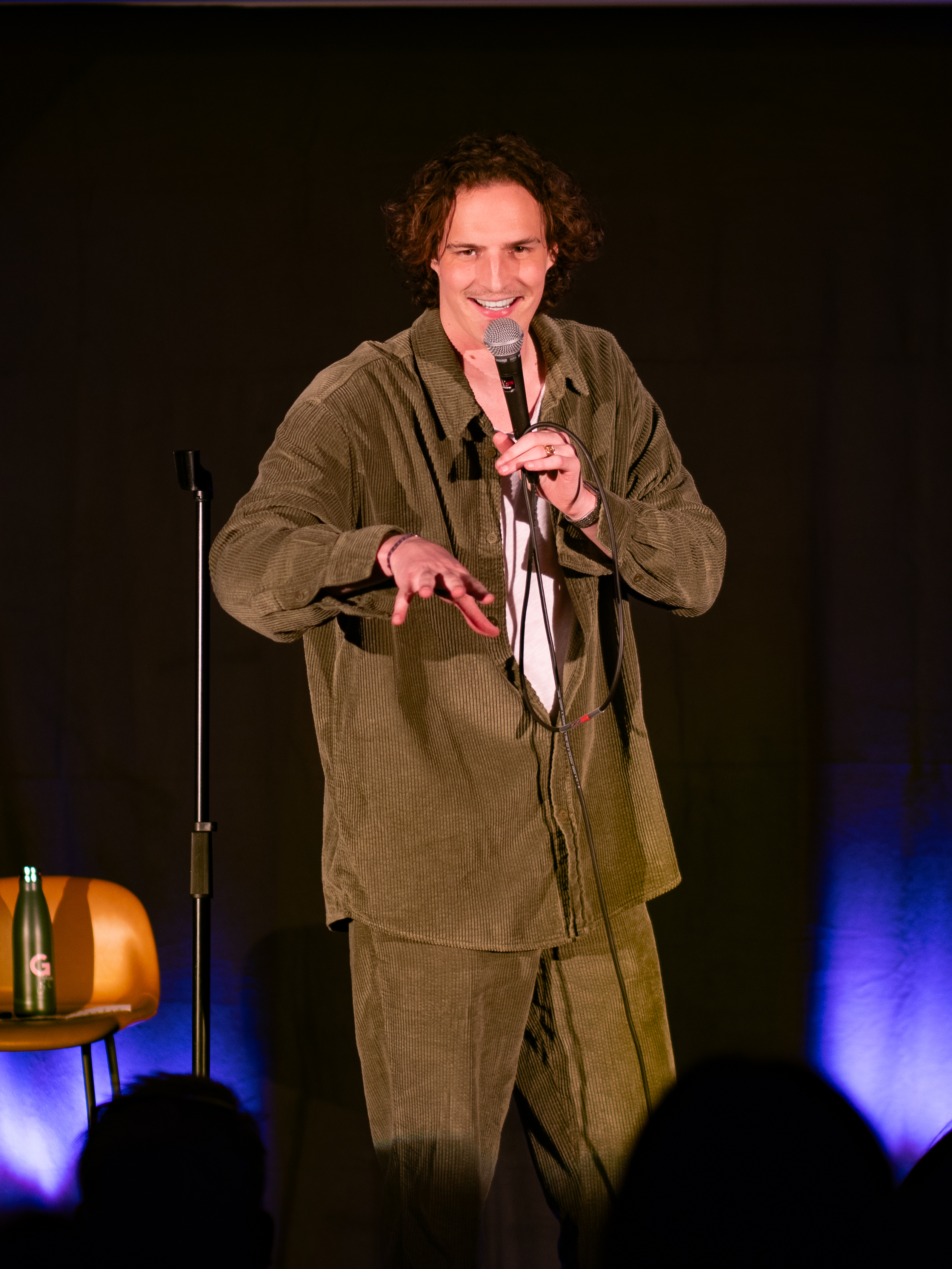 “Quand je me suis lancé dans le stand-up, un mec m’a dit : «si tu montes sur scène, c’est que t’as un vide à combler, quelque chose à te prouver.» Rien à voir ahah ! Moi je veux juste faire marrer les gens, c’est tout. Puis j’ai commencé à écrire des vannes sur la fois où je me suis fait humilier par une meuf devant tout le lycée, la fois où je me suis caché dans un buisson pendant 8h pour pas me faire taper, mais aussi cette révélation d’avril 2023 et cette fois où une psy a dit que j’étais incapable d’aimer. Bref, j’ai aucun vide à combler, rien à me prouver. Moi je veux juste faire marrer les gens, c’est tout...” Paul de Saint Sernin