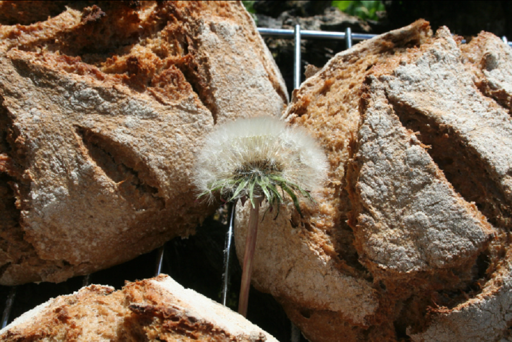 Collation avec confitures sauvages, pain au levain et tisane