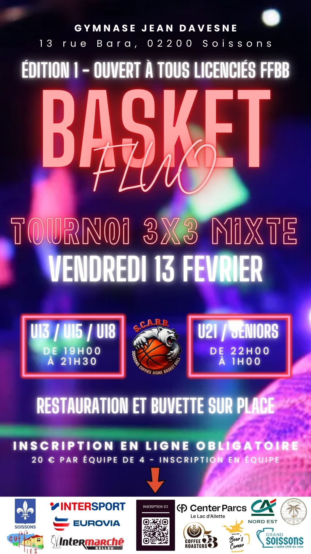TOURNOI MIXTE 3X3 BASKET FLUO
