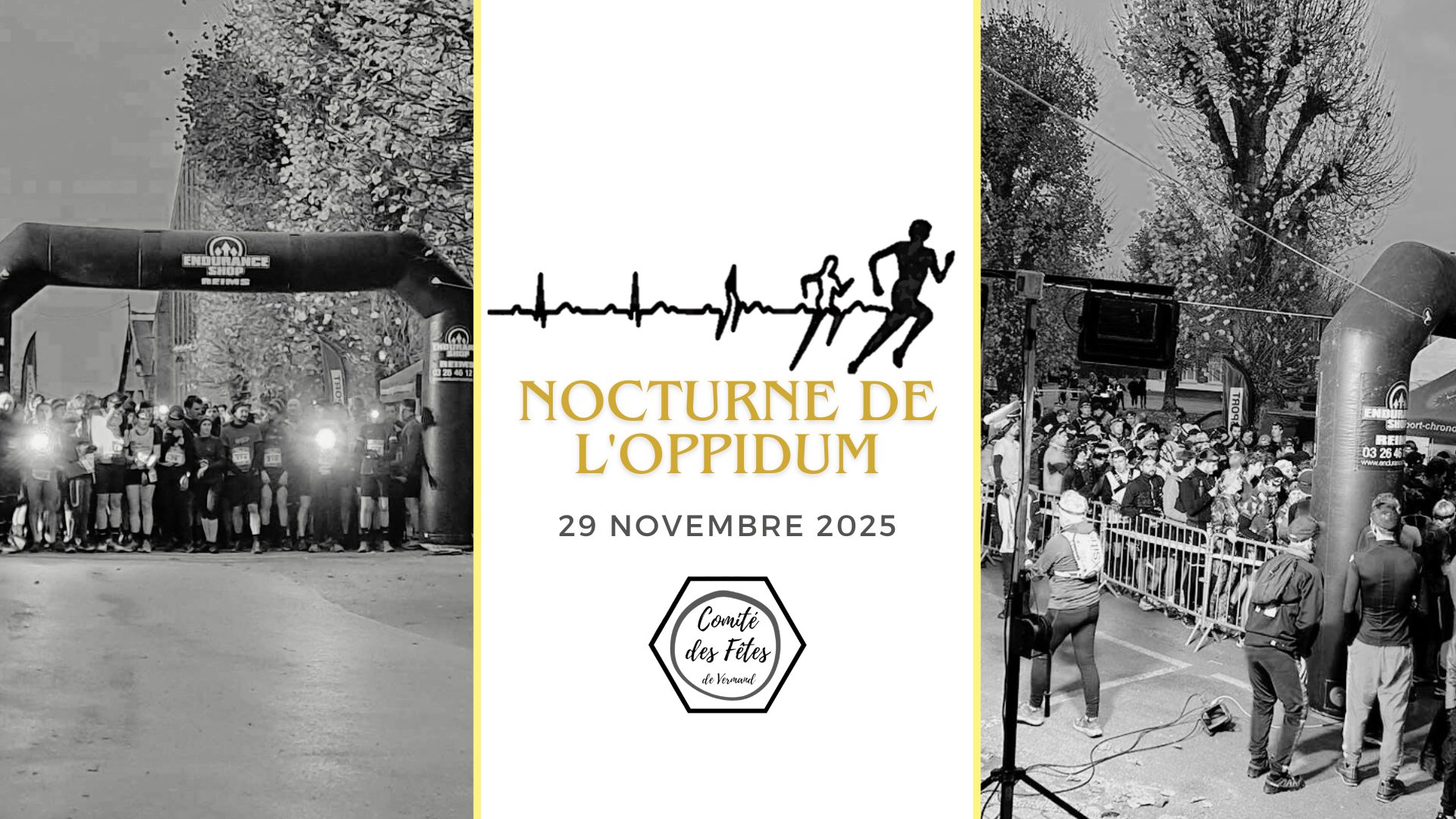 Samedi 29 novembre 2025 à partir de 17 heures, participez au 7ème trail nocturne de l'Oppidum à Vermand ! Course 16 km ou 8 km (licence ou attestation parcours prévention santé obligatoire). Marche 8 km. Organisé par le Comité des Fêtes de Vermand. Echauffement Zumba à 16h30 Ravitaillements Inscriptions en ligne jusqu'au 27 novembre : Inscriptions sur place : le jour même de 14h à 16h Dans tous les cas : PENSEZ A VOUS MUNIR D'UNE LAMPE TORCHE OU LAMPE FRONTALE Inscriptions en ligne jusqu'au 27/11/25 Inscriptions sur place : le jour même de 14h à 16h